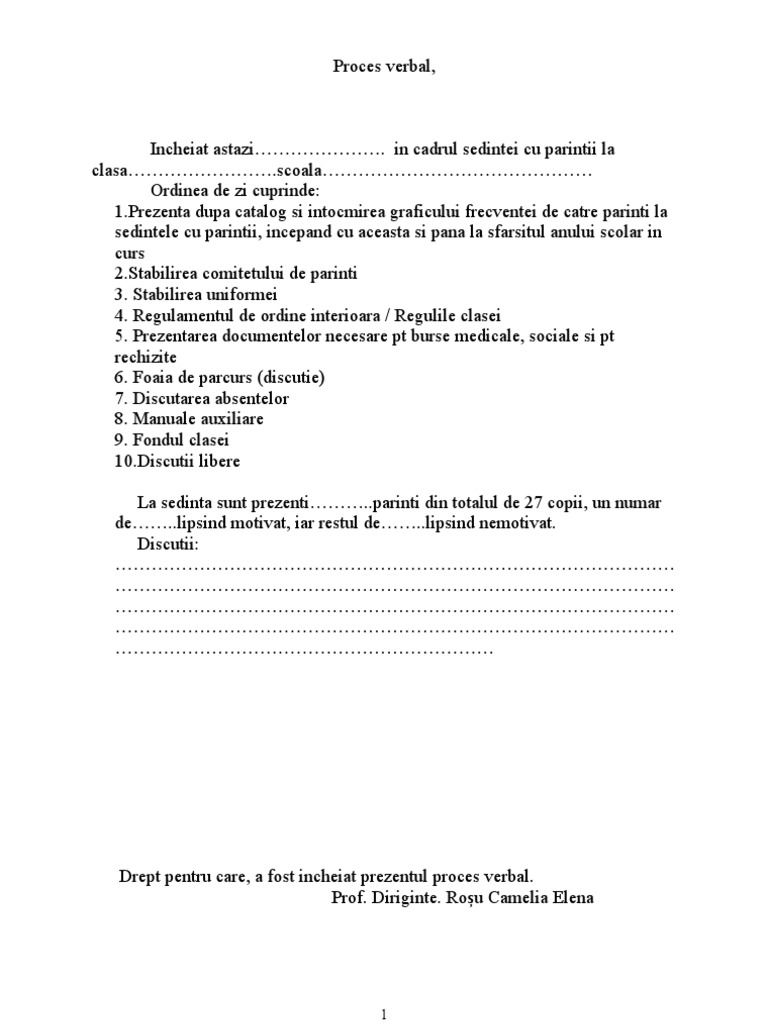 Probleme cu casnicia, suport, incurajari, pareri. După partea comună a şedinţei, fiecare dintre diriginţii de clasă au petrecut şedinţe individuale cu părinţii clasei, discutînd în particular insuccesele şi reuşitele. Proces verbal sedinta cu parintii. Folosirea strategiilor flexibile si deschise; Text of sedinta cu parintii.