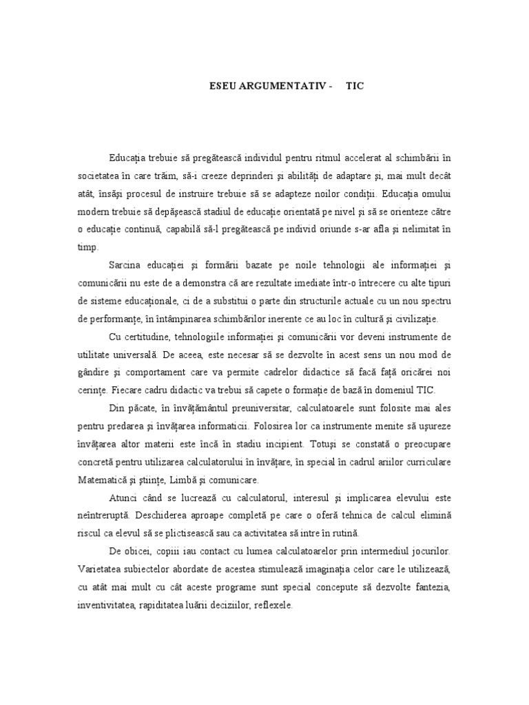 „jocul este cel mai important limbaj al copilului si singurul pe care il vorbeste pana in apropierea varstei de 12 ani, explica diana dragu, parenting trainer. Importantei jocului pentru dezvoltarea copiilor. Eseu argumentativ tip sii romană rolul jocurilor pe dispozitive.