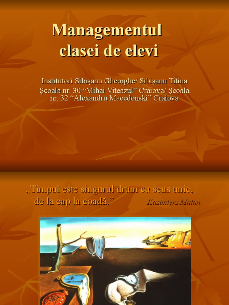 Pagina aceasta este dedicata tuturor acelora pentru care managementul clasei prezinta. Domeniu de cercetare n stiintele. Managementul clasei de elevi i.