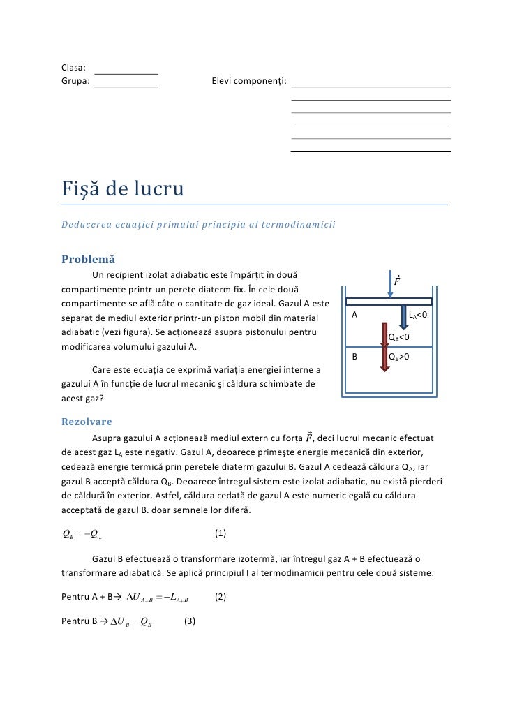 vizitati articolul complet aici : 2 Notm cu q suma dintre cantitatea de cldur exterioar, eq i cea interioar. Pentru a preciza sensul de desfăşurare a proceselor termodinamice şi calitatea acestora a fost necesară introducerea unei noi mărimi de stare: Mecanic, termic, electromagnetic, chimic inuclear.