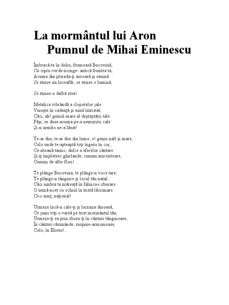 * la mormântul lui aron pumnul. Descărcați ca rtf, pdf, txt sau citiți online pe scribd. La mormântul lui aron pumnul este o poezie scrisă de către mihai eminescu în 1866 și semnată m.